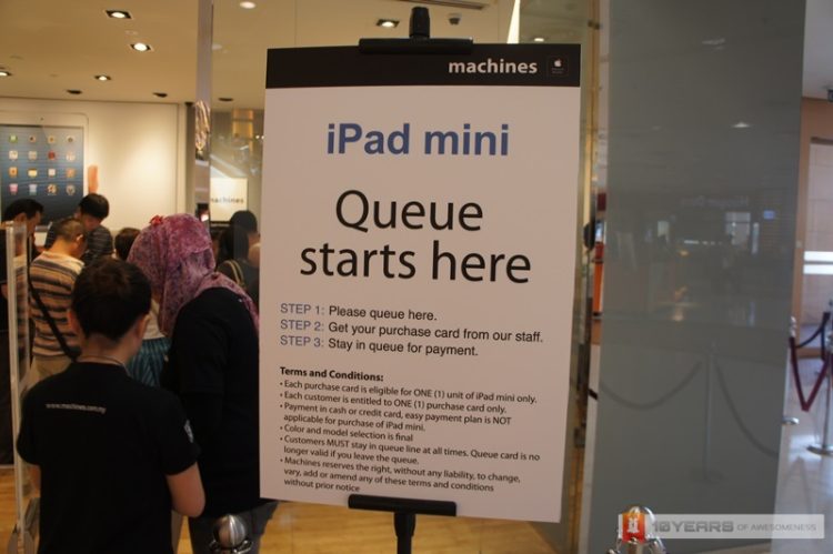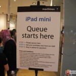 From our observations, there is a consistent flow of customers coming in to purchase the new tablets by Apple especially the iPad Mini. There is a queuing flow in place but at the time of our visit, there was no one was in the line. The notice at the front of the queue stated that each customer is able to purchase only one iPad Mini each and the easy payment plan are not applicable for the purchase.