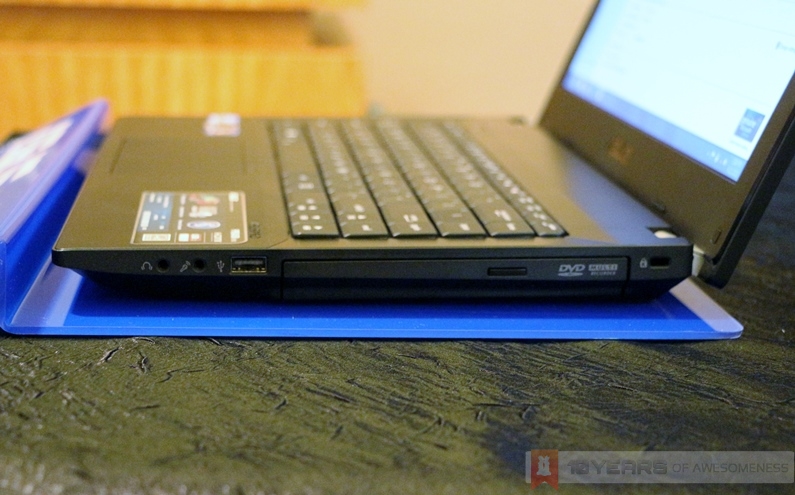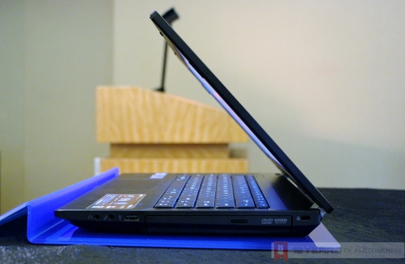 Connectivity wise, the ASUSPRO Essential P45V sports three USB drives (2x USB 3.0), LAN port, HDMI-out, VGA-out and SD card reader. The display is also similar to the BU400V, with a 14-inch 1366 x 768 anti-glare panel with an HD webcam on top. The greater height of the P45V also allows ASUS to slot in a DVD multi-drive.