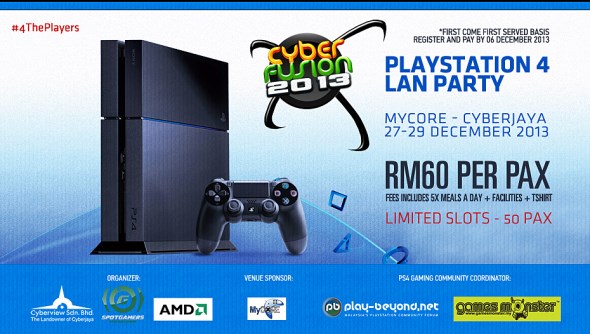 Scheduled to take place on 27 to 29 December 2013 at MyCORE Cyberjaya, the registration for the event have already closed by the time we discovered it since there were only 100 spots available at this year’s edition of CyberFusion. That being said, there is an area which is reserved for PlayStation 4 and the community team that is responsible for this area are currently looking for fellow PS4 owners to come join in the fun.