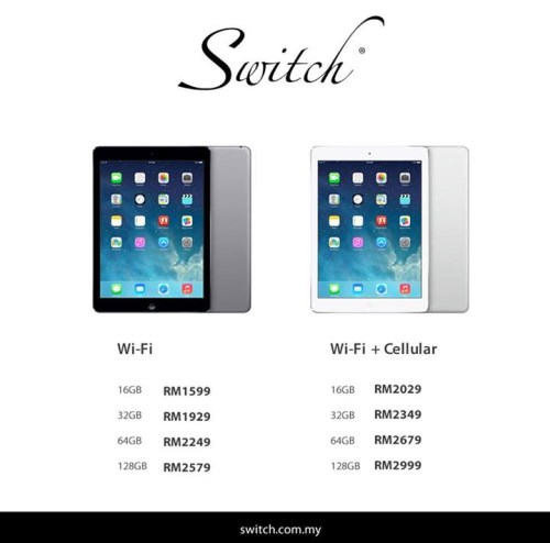 For example, the price list above was provided by Switch which is one of the many authorized retailers that are going to release the new iPad Air to their customers starting from today onwards. Upon a cross check with price lists from senQ, Machines and Thunder Match, they also carry the same pricing as above.