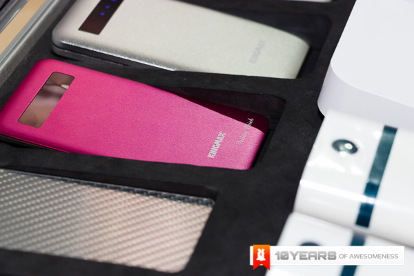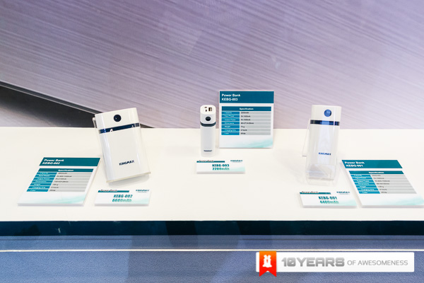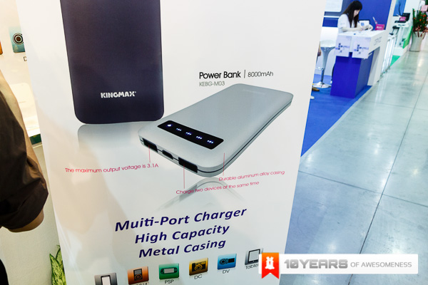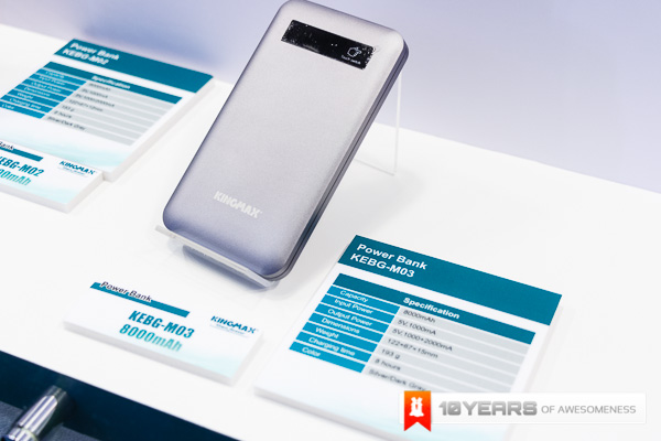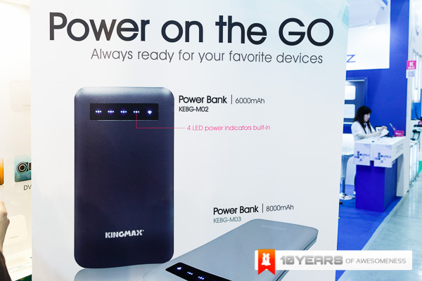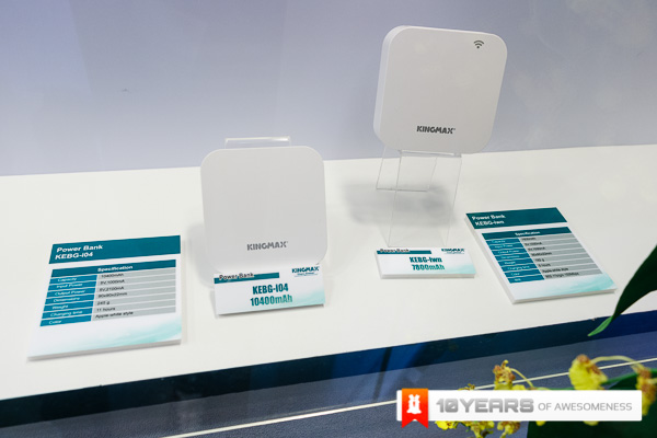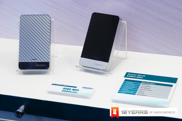The 3rd Part of our booth showcase comes from the memory guys Kingmax. Kingmax has always been one of those names that has been around when you talk about memory and this Computex, as with most other brands around, they have branched out to portable battery packs and they have done so in a big way. With the incredibly slim and well built KEBG-M02 and M03 that pack 6000mAh and 8000mAh respectively, they have a durable aluminium casing with a great brushed finish as well as the ability to charge 2 devices simultaneously. Kingmax also have the KEBG-I04 which is even bigger at 10,400mAh and doubles as a wireless device as well! Along with these few devices, Kingmax have released a whole host of different powerbanks for everyone.