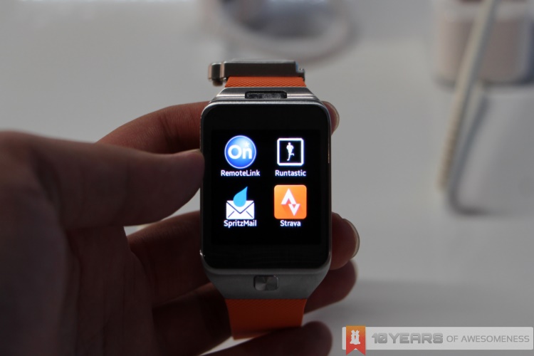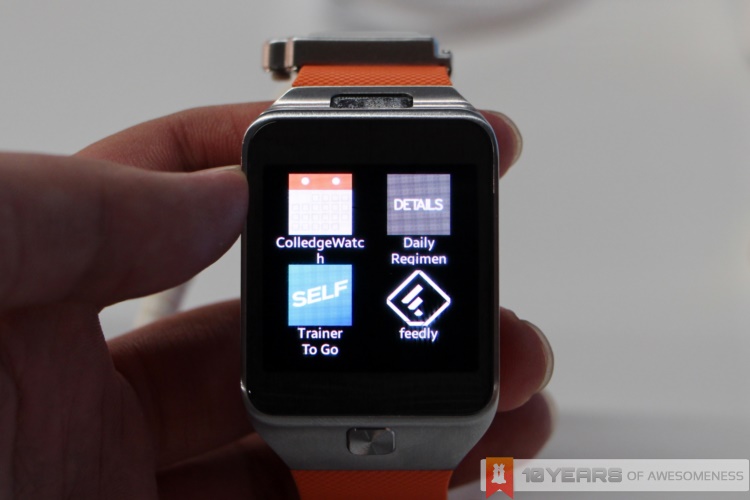 Specs wise, the Gear 2 has received a big bump in processor specs, with a new 1GHz dual-core processor buzzing within. The camera’s been upgraded too, to a 2MP unit. The IP rating for the Gear 2 is now IP67, which means better protection from water and dust compared to the IP55-rated Galaxy Gear. And, interestingly, the battery on the Gear 2 is slightly smaller at 300mAh (from 315mAh), but Samsung is claiming that battery life on the Gear 2 is vastly improved, with up to 3 days of standard usage. Besides that, the Gear 2’s hardware is pretty much similar to the Galaxy Gear: 4GB of onboard storage, 512MB RAM and a 320 x 320 AMOLED display. Oh, and let’s also not forget that the Gear 2 ships with an integrated heart rate sensor and pre-installed S Health app.