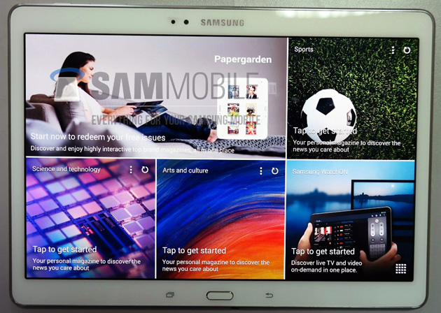 Samsung has always been a believer of keeping to a uniform design language over a generation of devices and as a result the larger devices often look remarkably similar to the smaller ones in the family. This is no different with Samsung’s upcoming tablet the Galaxy Tab S 10.5 and 8.4. Sporting a 10.5Inch 2560×1600 AMOLED panel, dimpled “band aid” back like the S5 and same specs as its predecessors ala the 1.9GHz Exynos 5 Octa Processor in the Tab Pro.