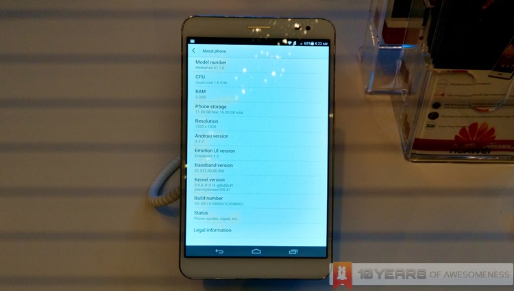 Apart from the Ascend P7, Huawei also announced the arrival of the company’s new X1 7.0 tablet. This tablet, which comes in either 3G or 4G variants, features a vivid 1920 x 1200 7-inch display while being just 7.18mm thick, giving it great comfort for use with one hand. Running on a HiSilicon Kirin 910 1.6GHz quad-core processor with 2GB of RAM, this tablet actually features a 13MP Sony camera sensor in its rear, while sporting a 5MP shooter in front. There’s 16GB of built-in storage, which can be further expanded with up to 32GB microSD cards. This 239g tablet, which runs on Android 4.2, also carries a massive 5000mAh built-in battery.
