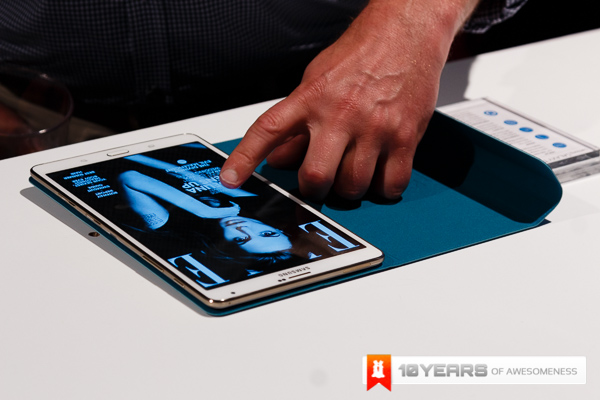 The Tab S also works well with the latest iteration of SideSync, allowing users of Galaxy S5’s to answer the phone and even interact with it on the tablet itself. On top of that, the Galaxy Tab S will come with a host of accessories at launch.
