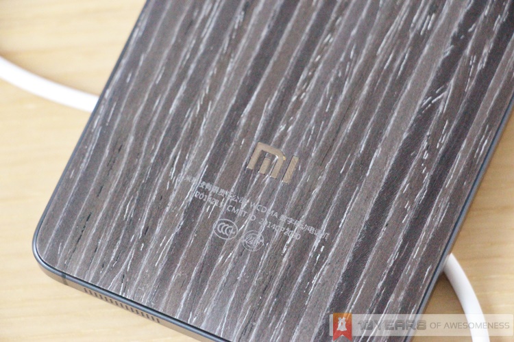 Xiaomi proudly states that the Mi 4 has a steel frame, adding rigidity and strength to the outer plastic chassis. For the most part, the Mi 4’s first impressions can be summarised as an amalgamation of many different ideas from competing devices: the chamfered edges from the iPhone 5, the blocky square form factor with rounded sides like the Nokia Lumia 930, and the StyleSwap interchangeable back covers with various textures from the OnePlus One.