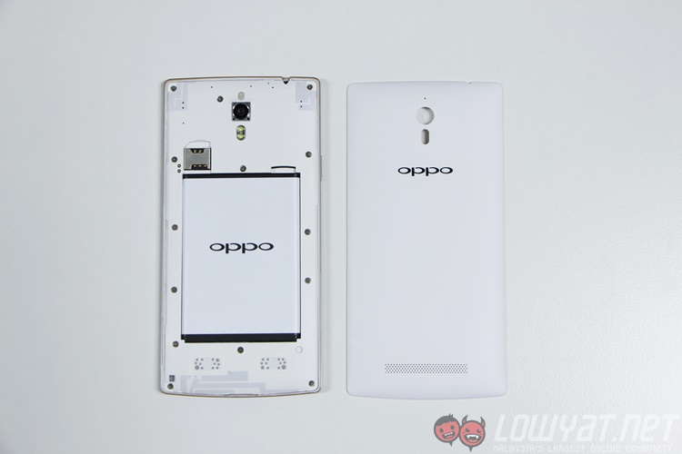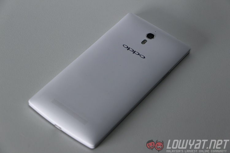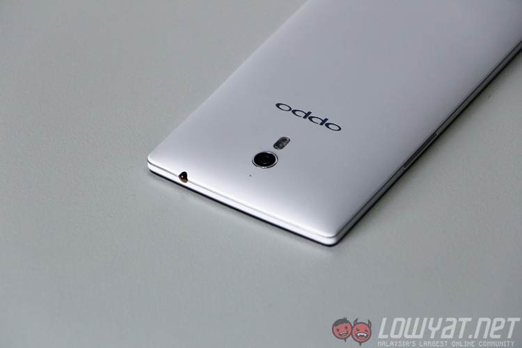 The front features a sexy 5.5” display with only one cutout for the earpiece and a pulsating light right at the bottom. Flipping it over will give you a very simple textured back cover with the word “oppo” written across, and right above that would be a dual-LED flash, camera followed by a microphone hole, while the speaker grill sits at the bottom.