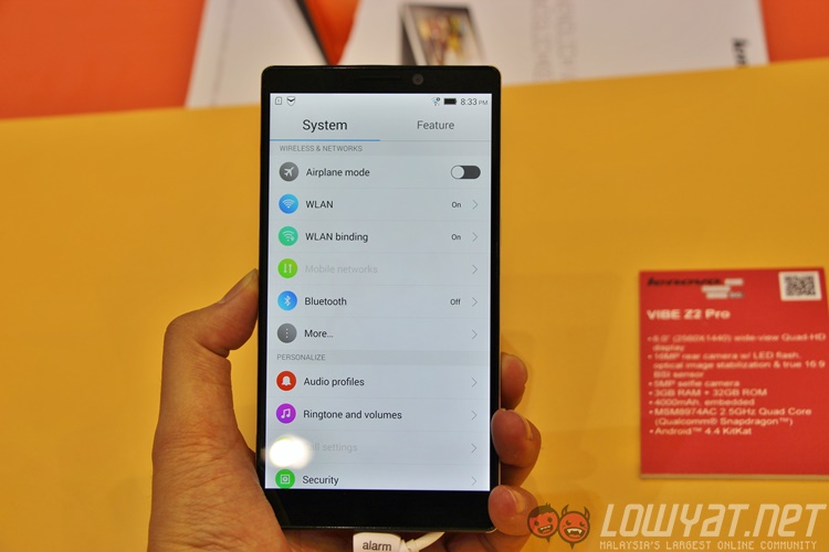 In terms of hardware, the Vibe Z2 Pro sits right up there with the mainstream phone makers. Powered by a 2.5GHz Qualcomm Snapdragon 801 quad-core processor with 3GB of RAM, the Vibe Z2 Pro also sports a 6-inch 2560 x 1440 IPS display. As if that’s not impressive enough, here’s the rest of the Vibe Z2 Pro’s hardware: 16MP rear camera with OIS, 32GB of non-expandable storage, 4000mAh battery, and a metal body that’s just 7.7mm thick and weighing 179g.