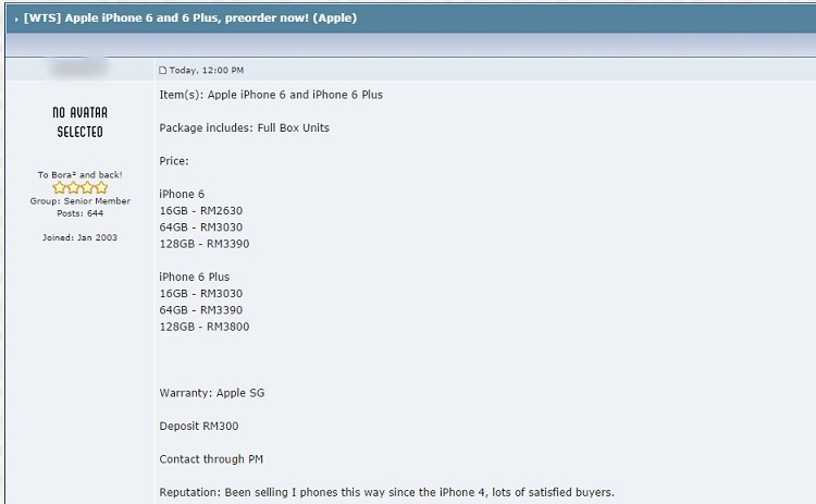But as you trawl through the many threads, you will find that the “standard” prices for the iPhone 6 and 6 Plus are less extreme than the example above. Most, however, are priced about RM500 dearer than the retail prices in Singapore, where the margins can be even higher for the Gold colourway due to its high demand. If you really must get that 128GB Gold iPhone 6 Plus, be ready to shell out about RM4000.