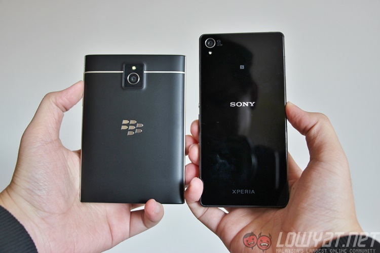 BlackBerry Passport (left) and the Sony Xperia Z3 (right)