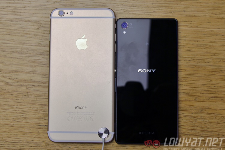 iphone-6-6-plus-size-comparson-2Apple iPhone 6 Plus (left), Sony Xperia Z3 (middle), & iPhone 6 (right)