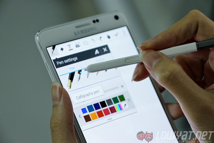 Of course, no coverage of the Galaxy Note’s software is complete without talking about the S Pen. It is twice more sensitive that the one in the Galaxy Note 3, and even detects when it is facing the screen at an angle, allowing for writing modes with various thickness. Samsung was so confident in the S Pen’s writing capability, it allows you to write in cursive, or even calligraphy.