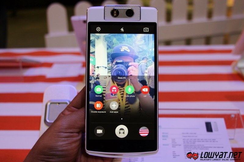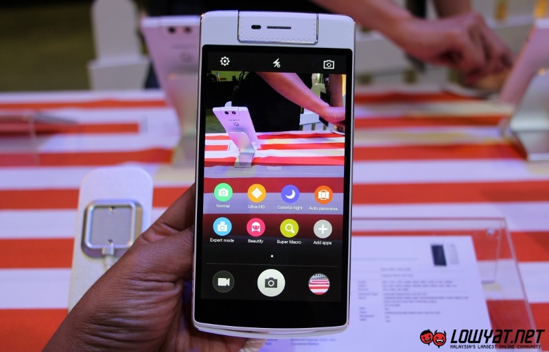 When Oppo N1 was first announced to the world last year, its rotating camera was pretty much the talk of the town. The idea of having such camera is quite interesting since it allows users to utilize the same high resolution 13-megapixels camera for both rear shots and front-facing selfies.