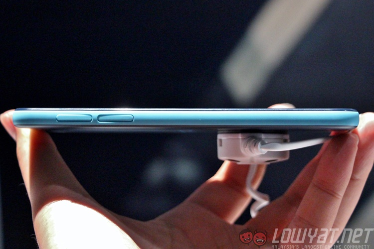 The HTC Desire EYE looks and feels very similar to another recently-announced HTC smartphone, the Desire 820 – but HTC made key design changes that actually make the EYE look rather attractive. Gone is the glossy back in favour of a matte surface. HTC also adds a rubberised finish on the EYE’s sides for extra grip, and introduced a camera shutter button. Despite the two-colour finish, the EYE’s chassis is actually a unibody, made with a double-shot manufacturing process that moulds two plastic plates into one.