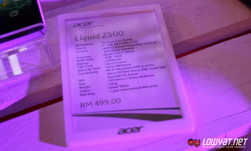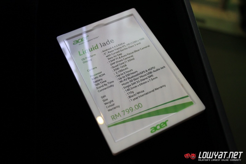 Moving on, Acer Malaysia has also launched the sleek looking Liquid Jade at the event. We have mentioned about this particular device during Computex back in June but in case you need a refresher, the device is equipped with a 5-inch HD display alongside 1.3GHz MediaTek MT6582 quad-core processor, 2GB RAM and 16GB internal storage as well as the support for microSD with capacity of up to 32GB.