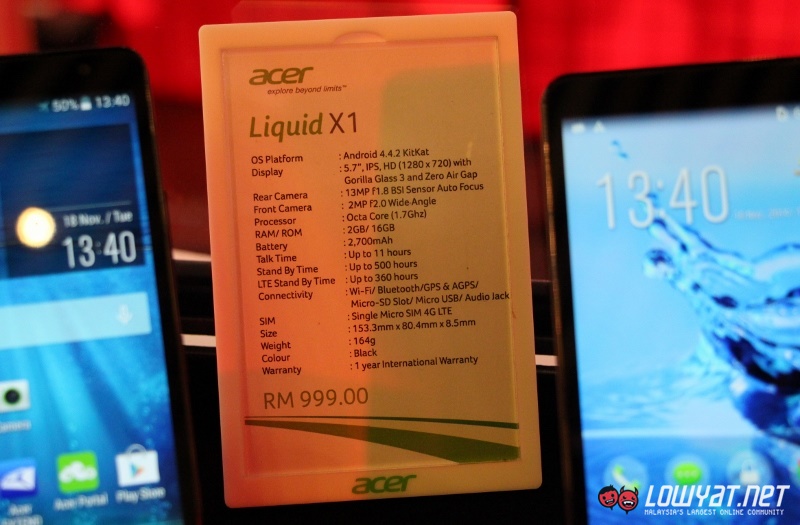 Among new models that were launched at the event is the Liquid X1. Built with 5.7-inch IPS HD display, the LTE-enabled device also features a 1.7GHz MediaTek MT6592 octa-core processor together with 2GB of RAM and 16GB internal storage. Users are also able to add up to 32GB worth of extra storage space in Liquid X1 via the phone’s microSD card slot.