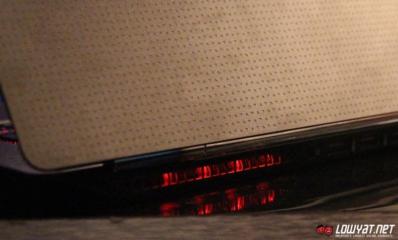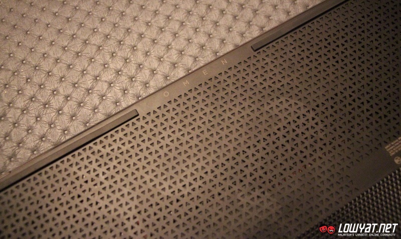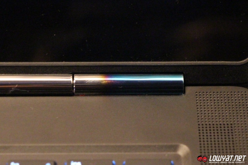 With a thickness of 19.9mm, the 2.12 kg laptop is also designed in such a way that its base is narrower than other part of the laptop but despite that, we found that it doesn’t affect the laptop’s stability. The bottom part of the laptop features a rather intricate textured design which is apparently designed to feed cool air into the laptop’s dual thermal fans while stopping hot air from entering it at the same time.