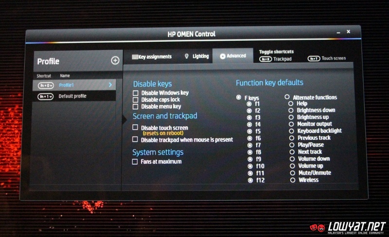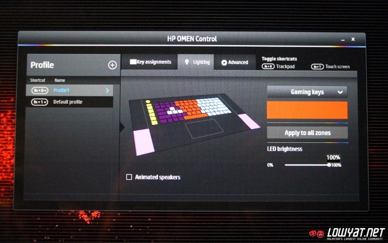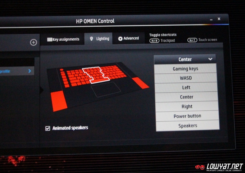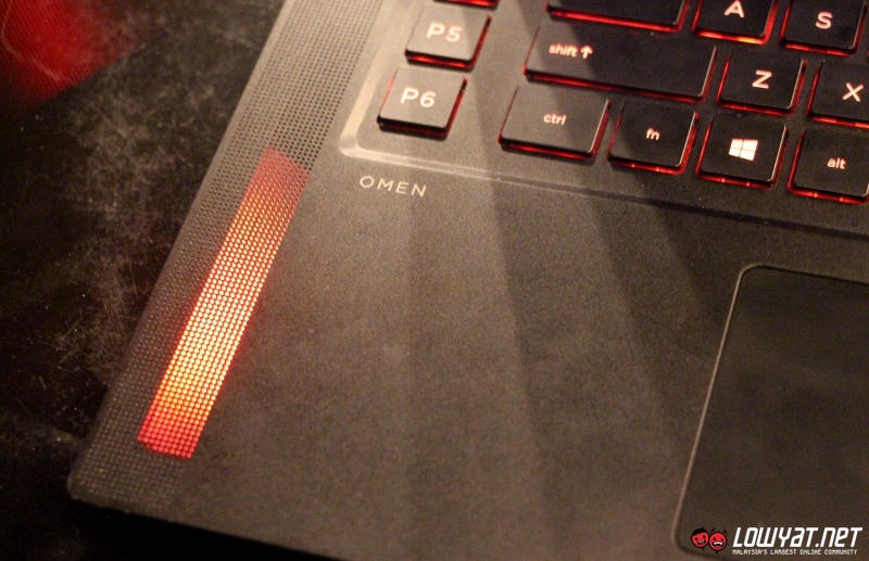 Just like many gaming laptops out there, the HP Omen also comes standard with a backlit keyboard but instead of a boring single colour keyboard, the laptop’s keyboard is divided into five separate light zones that can be customized using a software called HP Omen Control. The software also allow users to set light colours for the laptop’s power button and Beats Audio speakers in addition to shortcut keys.