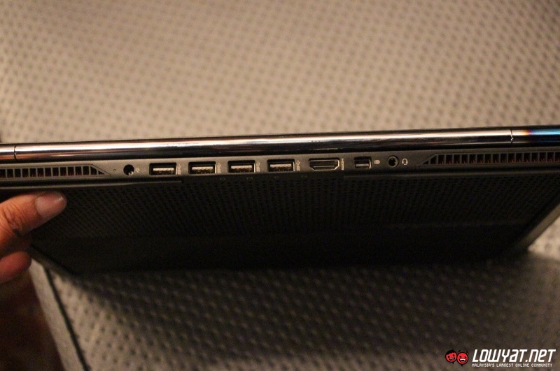 As pretty as the laptop might look though, we are quite baffled to see all of its I/O ports which include a HDMI, mini DisplayPort, four USB 3.0 and even its 3.5mm audio port are positioned at its back. We reckon that it might not be convenient for some users since they have to lower down the laptop’s display or turn the laptop around in order to access those ports.