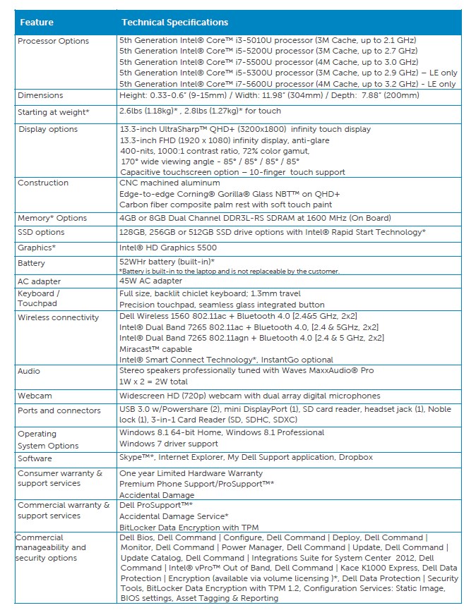 Not only that, the laptop also has thickness of 15mm together with a maximum weight of 1.27kg. However, Dell apparently has maintain the same aluminum and carbon fiber construction that it has used in previous XPS models. Nevertheless, the company is more than proud to proclaim the 2015 XPS 13 as the smallest 13-inch laptop in the world at the moment.