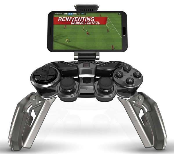 The LYNX 9 is a rather unconventional controller due to its skeleton structure. Among the configurations that is possible with this design is using the smartphone clip to attach your smartphone to the controller or attaching a keyboard module to it that features a full QWERTY layout.