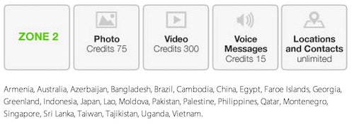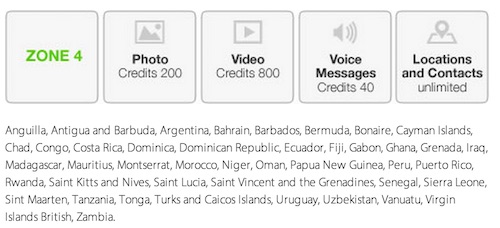 Fortunately, some of the most popular countries are located in Zone 1, where it’s the cheapest to send multimedia files. Malaysia is located in Zone 1, along with popular countries like France, Hong Kong, Korea, New Zealand, Thailand, United Kingdom, United States and more. It takes 20 credits to send one photo, 100 credits for a 10 second or less video, and 5 credits for one audio clip of 10 seconds or less.