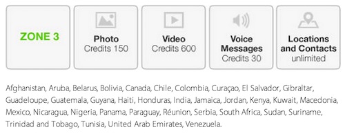 The catch? The €10 yearly payment is only applicable for text messages, locations and contacts. Should you wish to send pictures, videos and even audio clips to your friends, you’ll need to buy additional credits – €5 for 1000 credits. How much credit does it take to send a multimedia file? It depends on your zone.
