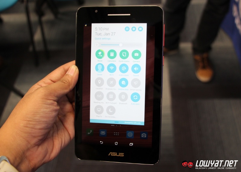 One of the major aspect that differentiate FE171CG and its predecessors is its design. According to ASUS, the newer Fonepad 7 is actually around 2.8mm thinner and 10 grams lighter than the FE170CG. In addition to that, the company also claimed that the device can also be easily operated with just one hand due to its 9.24 mm bezel.