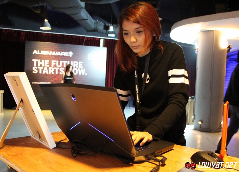Professional gamer and singer Ramona Azween getting her hands on the new 2015 Alienware 15 at its Malaysian launch event.