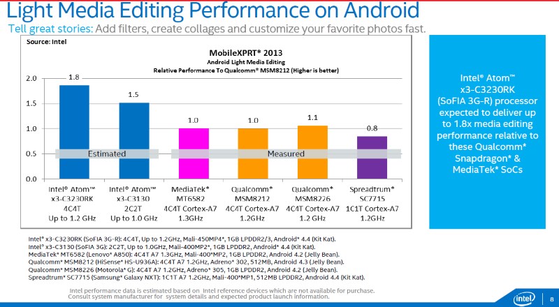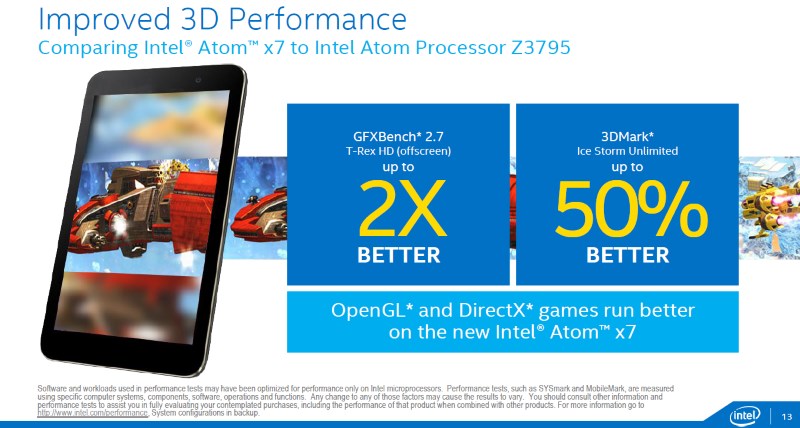 Interestingly, Intel has not provided any information about power usage for the new processors although we were informed the power consumption is relatively the same as their Bay Trail predecessors. The smaller die on the Atom x5 and x7 should, in theory, mean more power efficiency over the previous generation. However, there is nothing to compare against the competition without at least some numbers.