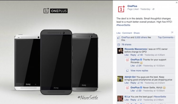 Shortly after HTC finally unveiled the One M9 smartphone at MWC 2015, OnePlus posted this onto its official Facebook page: