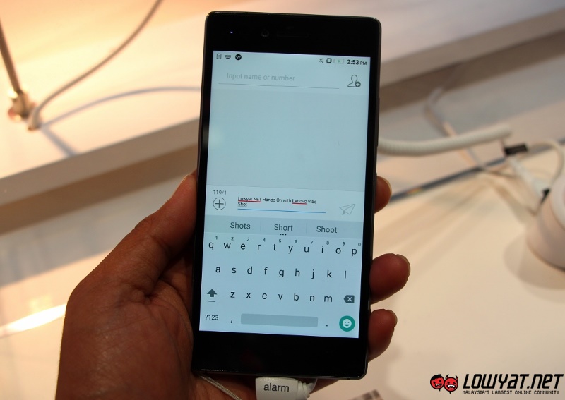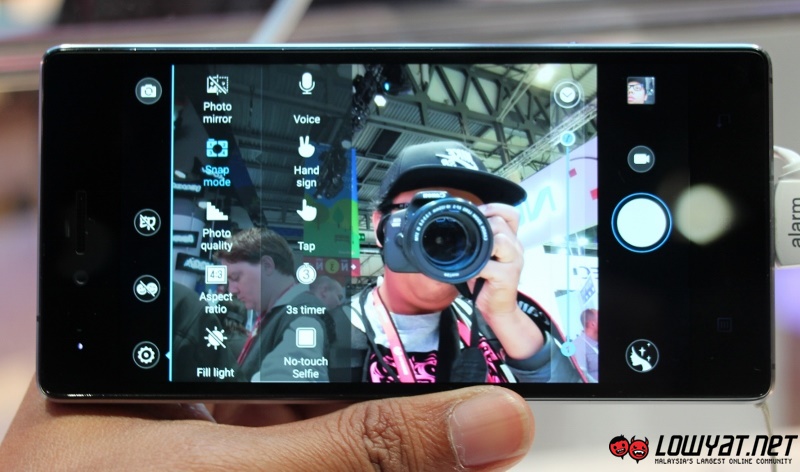 The camera also features an infrared-based autofocus capability that is apparently faster that standard autofocus implementation although we not able to test it properly due to the unit above running pre-production software and the ever changing lighting at Lenovo’s booth. At the same time, Lenovo didn’t forget to cater to the needs of selfie lovers too through Vibe Shot’s 8-megapixels front camera which also supports Vibe Xtension Selfie Flash that was announced alongside Vibe X2 Pro at CES 2015 earlier this year.