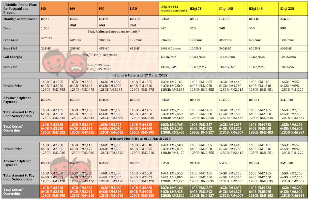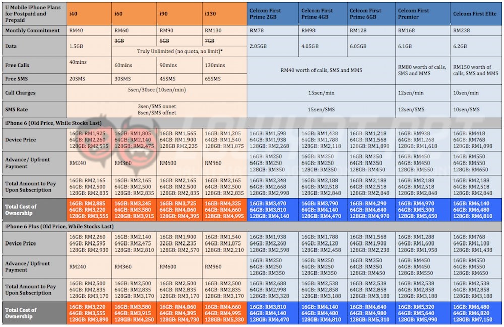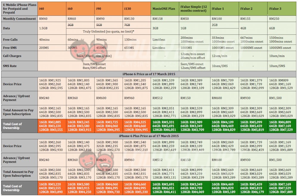 The new U Mobile iPhone 6 and iPhone 6 Plus bundles does indeed look very promising. Its new iPlans offers the cheapest option in the market starting from RM40 a month, and comes with plenty of data, suitable for today’s users. But how do the new plans stack up against the big 3 telcos who have been offering the iPhone for many years now? Check out our price comparison after the break.