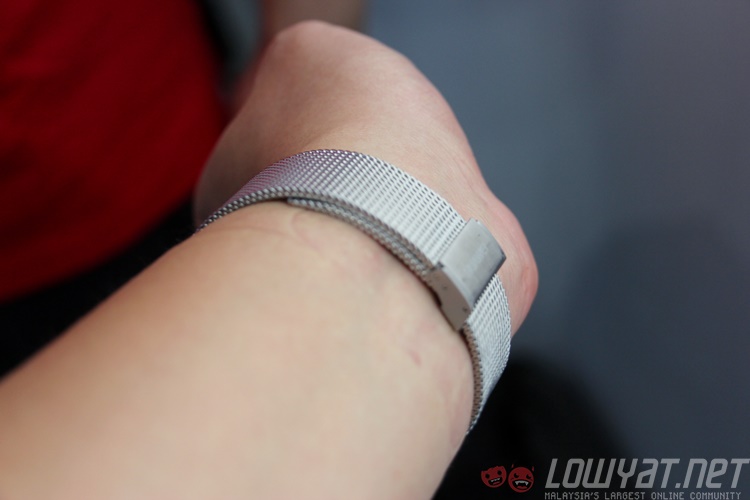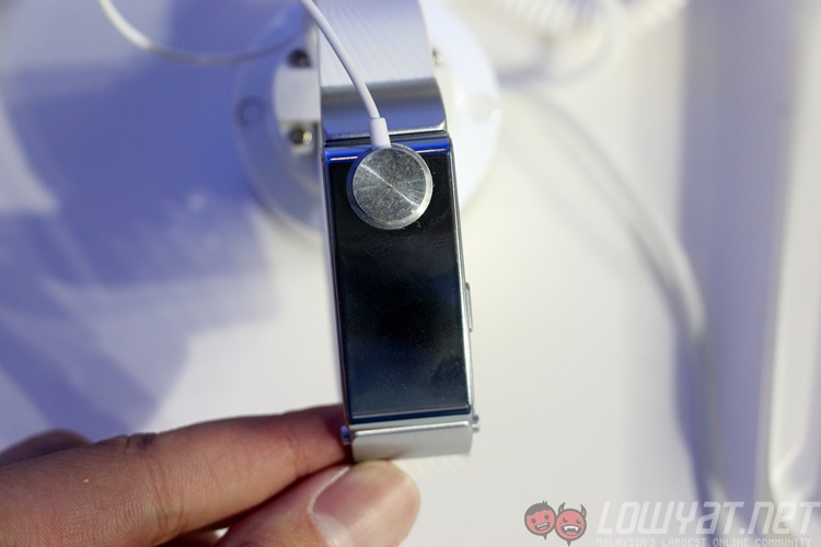 The TalkBand B2’s core is removable, and you’ll need to do so when you are charging the module. What’s pretty cool about the core is with the display: the panel takes the colour of the core, so when it isn’t turned on, it looks like it’s just a small trendy wristband. Press the power button and you’ll see glanceable notifications displayed in white. The panel has touch support too, so you can swipe to show the various information it collects.