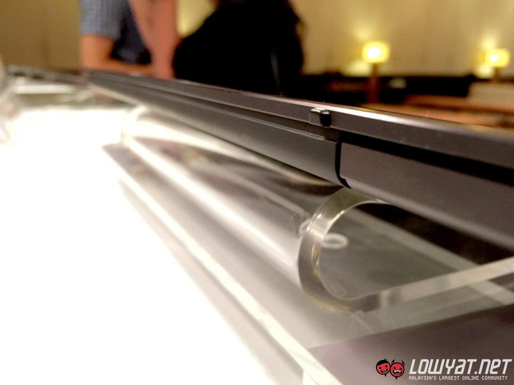In terms of design, the ZenBook UX305 is only 12.3mm thin at its thickest point and weighs a mere 1.2kg. The laptop features the ZenBook’s signature spun-metal hairline design on the lid, matched with what the company calls ‘diamond-cut’ edges on the sides. It is very welcoming to see that the small magnet placed at the lid is retained to prevent the laptop from accidentally opening. The lid is also etched outwards to allow easier opening of the laptop.