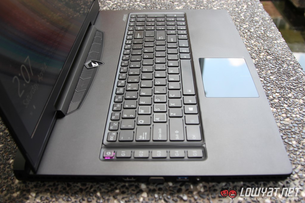Users will be impressed with the Aorus’ full metal body as well as its trackpad panel made of glass. It is definitely nice to have one, but it does have its quirks – more on that, later. Measuring only 2.29cm thick and weighing a hefty 3kg, it is not the thinnest or lightest gaming laptop out there. The Aorus X7 Pro might not be a wise choice for those looking for a light laptop, as it does not sacrifice form factor for performance. Nonetheless, the company did a remarkable job at finding the balance between design and performance. It may be slightly heavy, but users won’t always be gaming on the go anyway.