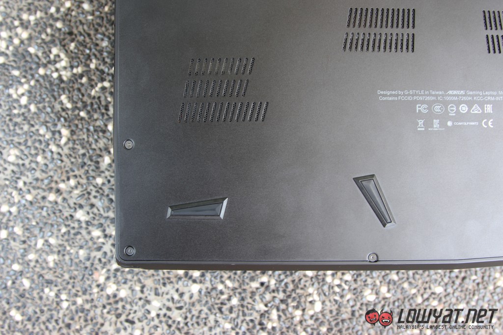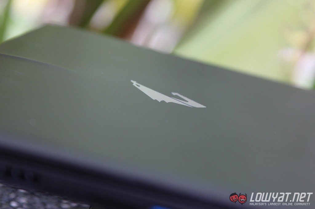 The Aorus X7 Pro will definitely turn heads with its striking design and the company’s eagle logo right in the centre of the lid. Resembling the beak of an eagle, the lid’s surface isn’t totally flat as there is a triangular bulge on the top with a slight fade of white paint.