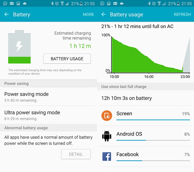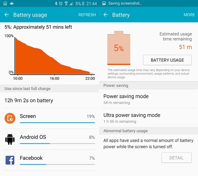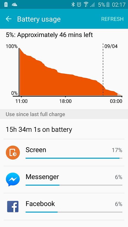 According to the built-in battery usage monitor, the screen takes up a big portion of the battery life, with the Android system a rather distant second. It appears that the culprit here isn’t Samsung’s bloatware (since there aren’t that many now, and I’ve disabled almost every one) but instead it’s the 5.1-inch Super AMOLED QHD display. The power draw in running a 2K display is proving a little too much for the small battery – and the sad thing is most users would probably be just as happy with a Full HD display, which one can assume would improve battery life significantly.