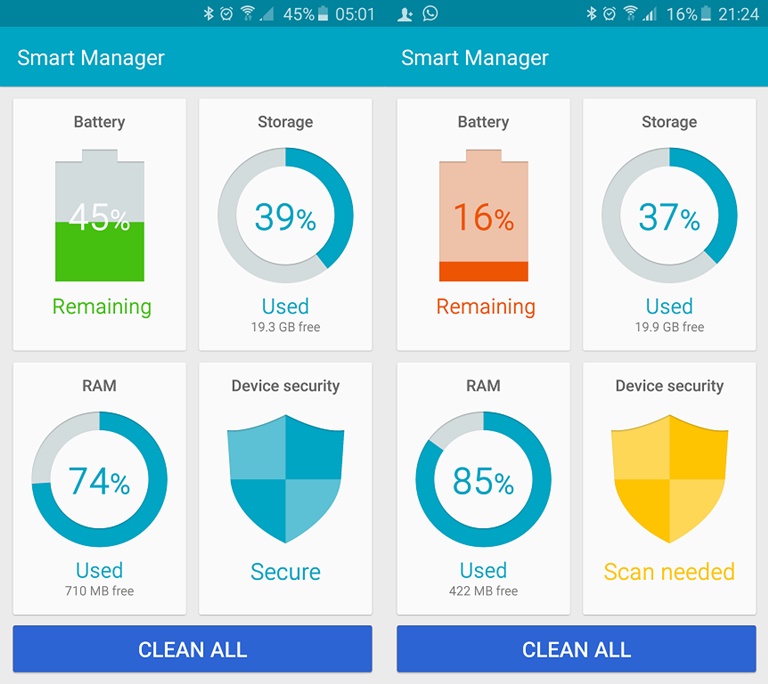In addition, there’s a new piece of software that is introduced with the Galaxy S6: Smart Manager. The Smart Manager app is similar to plenty of Chinese ROMs’ task manager apps, giving users a one-stop solution to take a look at the overall health of the device. It allows you to see how much free storage and RAM is available on the device, battery percentage, and security; yup, the GS6 is not only pre-installed with KNOX (which is disabled by default), every Galaxy S6 smartphone has McAfee’s mobile anti-virus software that runs in real-time.