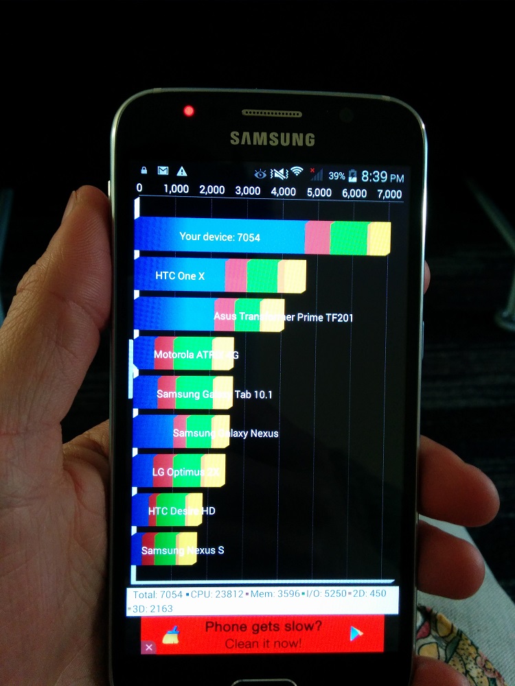 Benchmarks reveal that lack of power in the internals, with the device scoring a mere 7054 on Quadrant; and 18708 on Antutu. In comparison, our benchmark of the real Samsung Galaxy S6 revealed an Antutu score 60590. Of course, the people behind the fake were clever enough to put more effort into disguising the lack of flagship level hardware in their knockoff