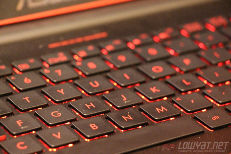 Aesthetics aside, the lid of the G501 is nice and secure (only requiring one finger to open), and inside of it, the aluminium palm rest area is very nice to the touch. The backlit keyboard has a pretty standard layout – other than the smaller numpad keys – and it’s an okay keyboard to type on, mainly because I wish the keys had more travel to it.