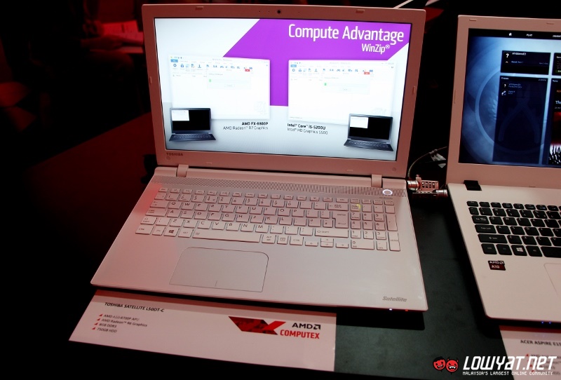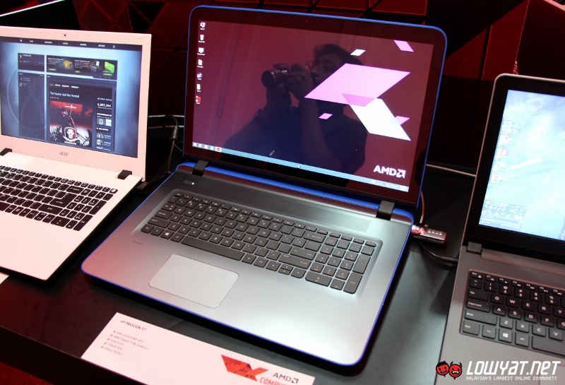 Since the 6th generation A-Series processors are designed for mainstream market, it didn’t surprise us to see the product line-up that AMD’s OEM partners have chosen to showcase at the event. They include Acer Aspire E15 E5-552G, Dell Inspiron 15 5555, HP Pavilion 17, and Toshiba Satellite L50DT-C.