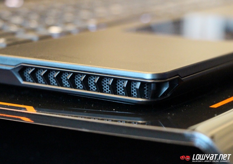 As per other models in AORUS gaming notebook line-up, X5 also features five hotkeys on the left side of its backlit keyboard which allow access up to 25 active individual macro settings. With a thickness of 22.9mm, it was also constructed from aluminium and still features a glass-based touchpad but we noticed that there’s a grip strip on its click buttons – something that is not present on other AORUS gaming notebooks and quite a thoughtful inclusion.
