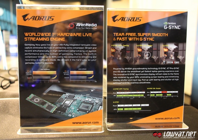 We were not informed of the reason behind the switch but then again, X5 will be released into the market with NVIDIA G-Sync technology – something that was only launched earlier this week. Additionally, customers can also choose to have AVerMedia CM311B M.2 capture card inside their AORUS X5 that apparently allows customers to record and stream their gameplay at better framerate as compared to software solution.