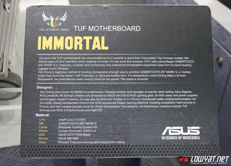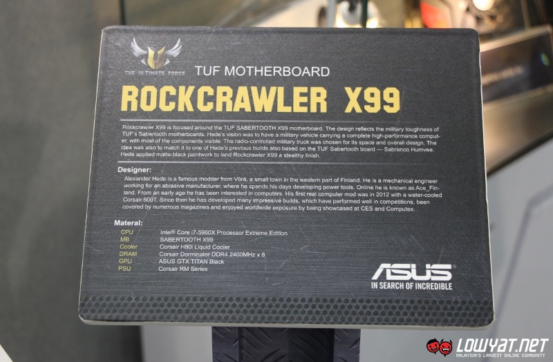 Apart from that, his other creation which is called Immortal and made from a Rimowa bag is also on display at the TUF section of ASUS booth alongside the Rockcrawler X99 by Alexander Hede. Not to forget, the ROG Maximus Command by Great B. W. is a sight to behold since it is made from Lego.