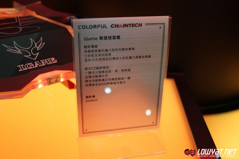 Most of the scratch build or modded cases out there are quite huge but there are some that are rather small and slim just like this particular spaceship shaped PC case that we spotted at Colorful’s booth. Interestingly, it is built with liquid cooling as well in such a slim case. However, I personally not able to extract much details from the description since I’m not able to read in Chinese, unfortunately