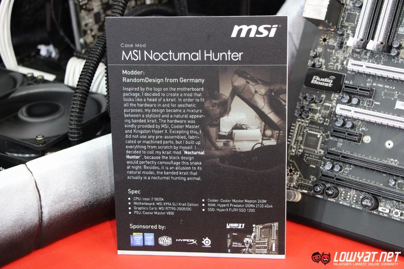 The third case that is on display at MSI’s booth is the MSI Nocturnal Hunter by Stefan Ulrich which was inspired by MSI X99S SLI Krait Edition motherboard. The fourth case on display at the booth was also made by Stefan and again, it was inspired by another MSI motherboard. For this particular case, it was the MSI HM97 ECO.