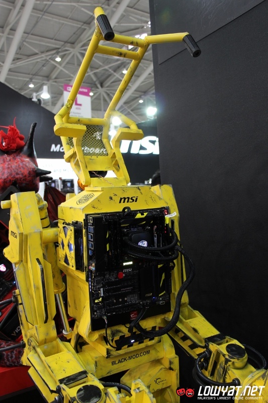 There are four custom cases at MSI booth and all of them are rather huge. One such case is called the MSI XPOWER Loader which was made by the well-known Hungarian modder duo, Soccer and BaluC. If you didn’t notice, the case was directly inspired by the Power Loader exoskeleton machine that is famously associated to Sigourney Weaver’s character in the Alien film series.