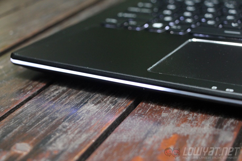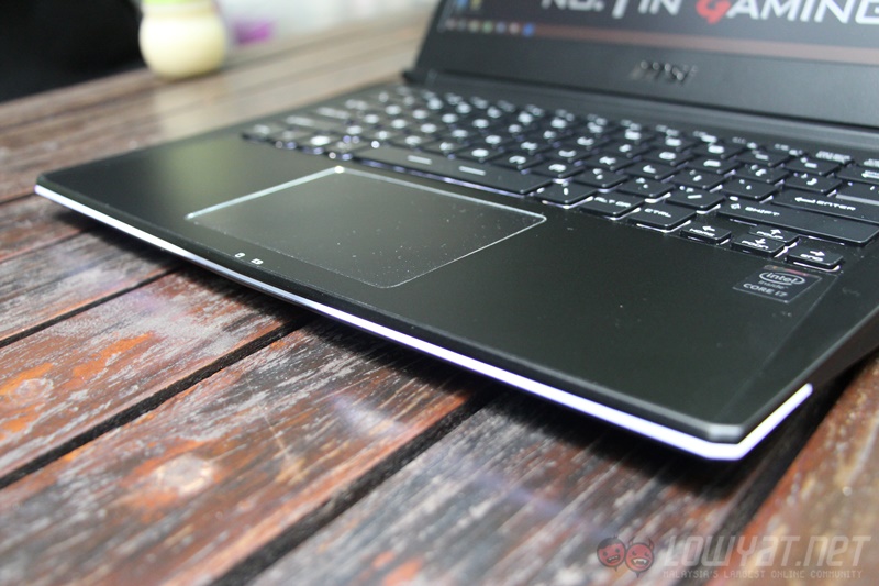 While the GS30 doesn’t look like a gaming laptop at first, it changes once I powered it on. The first thing that got my attention is the strip of light on the bottom chassis of the GS30. It gives the impression that it is not a typical everyday laptop. At first, I like how it looks, but once I found out it cannot be disabled, I’d rather not have it in the first place. Not only does it get distracting after some time (especially in low-light surroundings), it also unnecessarily drains the battery, no matter how miniscule the power draw might be.