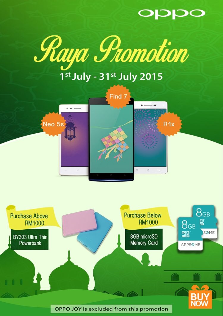 More and more manufacturers are holding their own promotion during this festive month. This time around, it’s Oppo Malaysia. The company will be offering a free power bank or an 8GB microSD card with every purchase of its product until the end of July 2015.